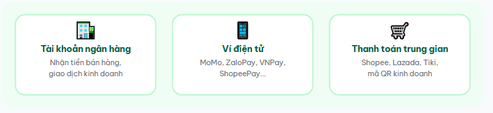 Ví dụ tài khoản nhận tiền từ sàn thương mại điện tử (Shopee, Lazada, Tiki...) hoặc tài khoản gắn với mã QR thanh toán kinh doanh.
